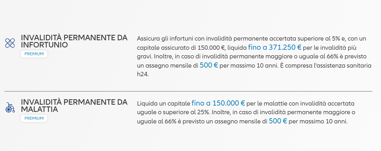 Prevede un capitale in caso di invalidità permanente provocata da una malattia. Puoi completare la protezione con un assegno mensile per le malattie che determinino invalidità pari o superiori al 66%.